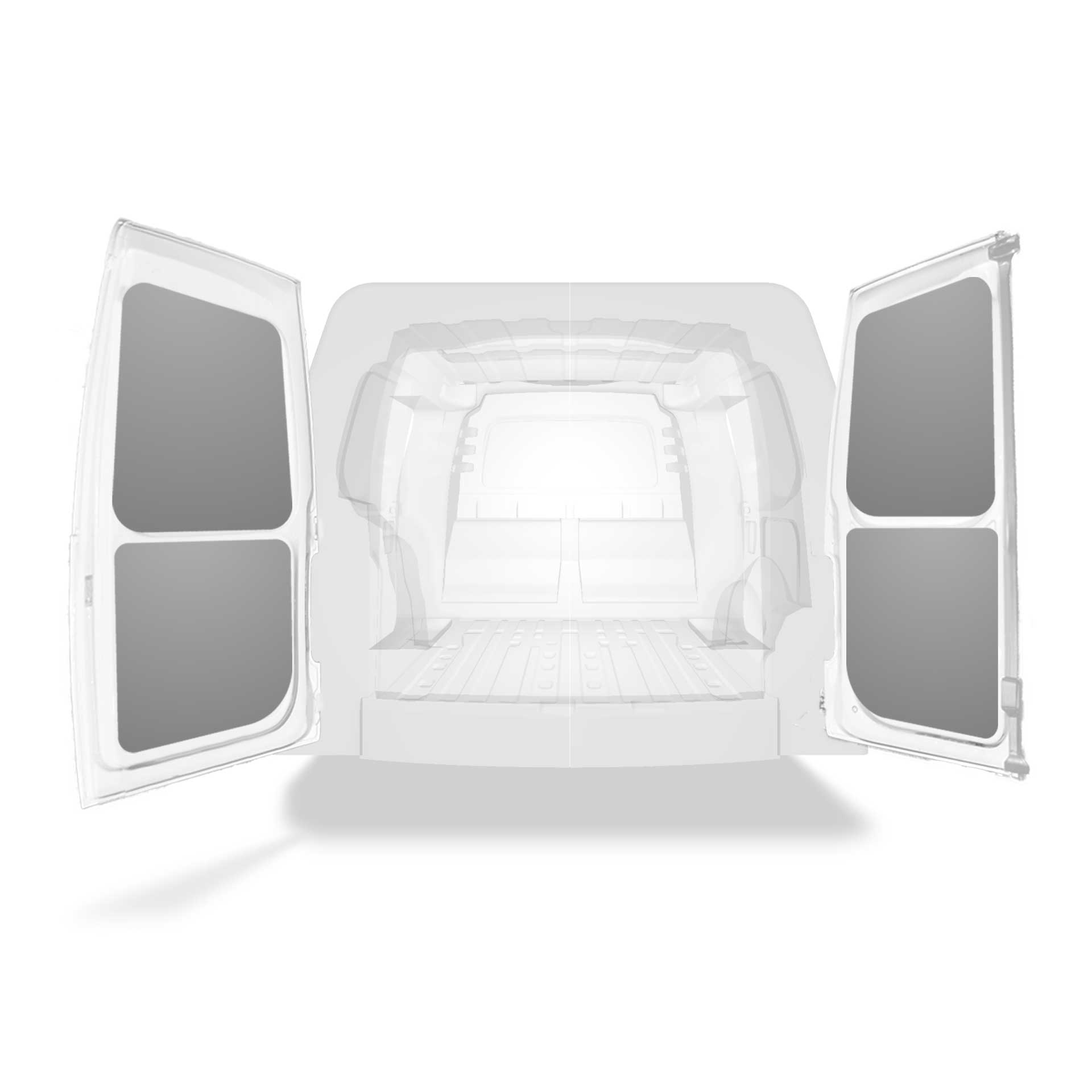 The rear door linings are designed and fabricated to fit in the sections of the rear door/tailgate of the vehicle to minimize weight. The liners protect the vehicle, create a bright working environment and are easy to wipe clean.