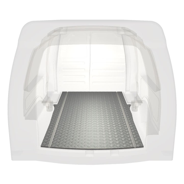 Lehká a robustní extra dlouhá podlaha pro dodávky Volkswagen Caddy Maxi s protiskluzovou hliníkovou deskou a nákladními kolejnicemi (podélnými) pro rychlou a bezpečnou montáž regálových systémů a dalšího příslušenství.
