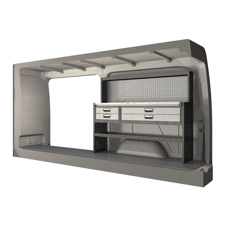 The racking has been specially designed to ensure the optimum fit to the vehicle, as well as the best possible functionality and safety. It has been developed for professional use, is flexible and is intended for service jobs in various types of business. All shelves are equipped with rubber mats, and all drawers with foam plastic liners. Assembly material is included.
