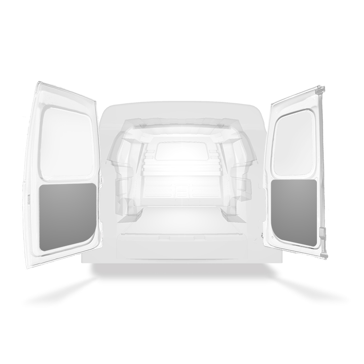 The rear door linings are designed and fabricated to fit in the sections of the rear door/tailgate of the vehicle to minimize weight. The liners protect the vehicle, create a bright working environment and are easy to wipe clean.